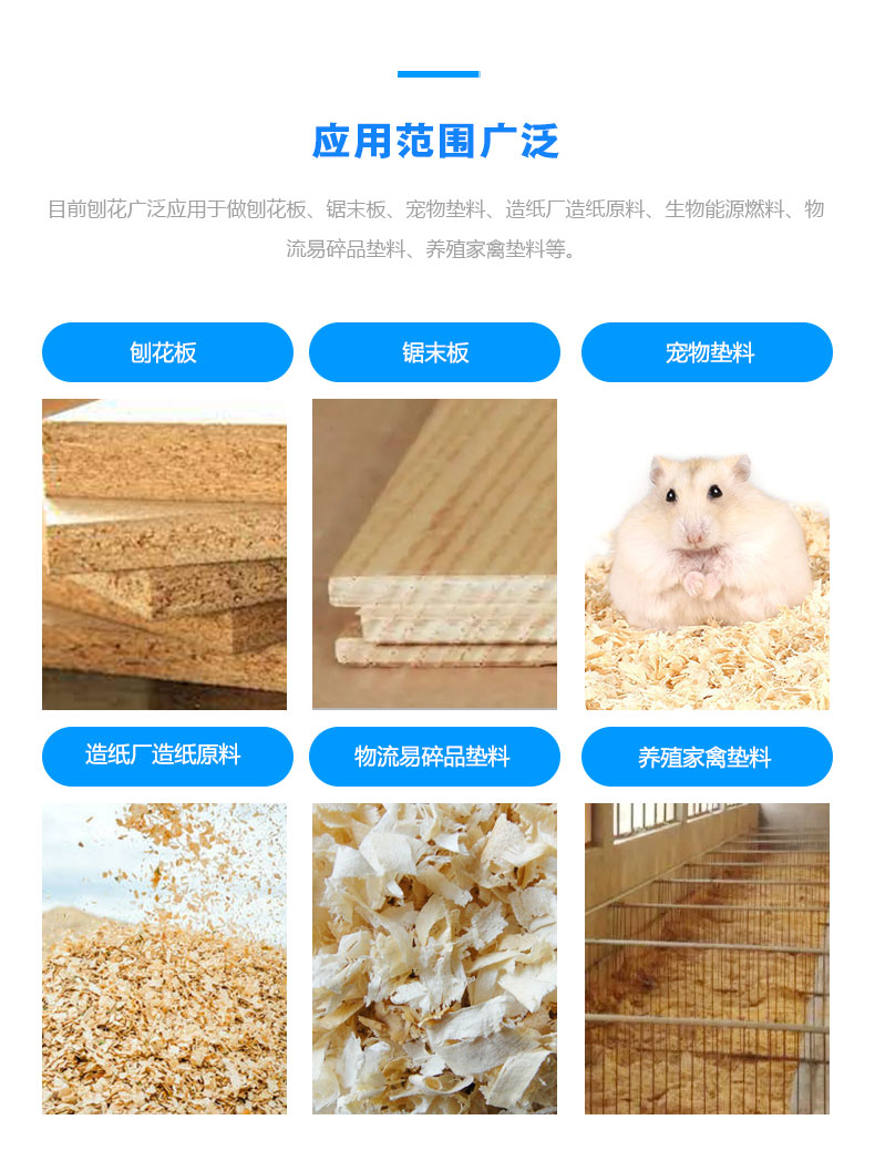 但是随着科技的发展,刨花的市场也走向了新的舞台,刨花的利用不断被不同行业的人群接纳,因此产生了加工刨花的市场。目前刨花广泛应用于做刨花板、锯末板、宠物垫料、造纸厂造纸原料、生物能源燃料、物流易碎品垫料、养殖家禽垫料等。
